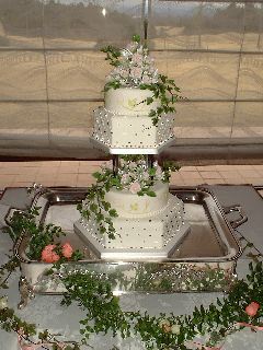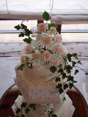 ケーキのデザインは、会場がゴルフ場ということもあり、ホワイトとグリーンを貴重に、淡いピンクのバラを合わせたスタイルになりました。
