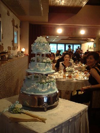 一番下は、フルーツケーキにして、当日カット、ラッピングして、お客さまにお裾分け。