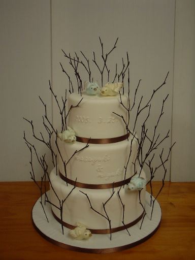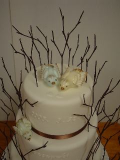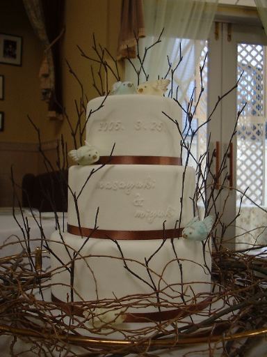 「木の枝と小鳥ちゃん」のシンプルなウエディングケーキになりました。