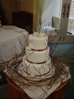 ケーキの回りには、雲竜柳を飾り、鳥の巣に見えるようにしました。。。