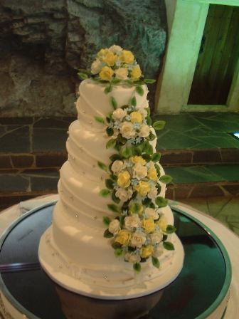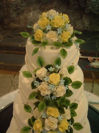 KEIKOさんが選んだデザインは、4段ものダミーを階段状に重ねてバラの花を上から流すように飾り付けたゴージャススタイル。